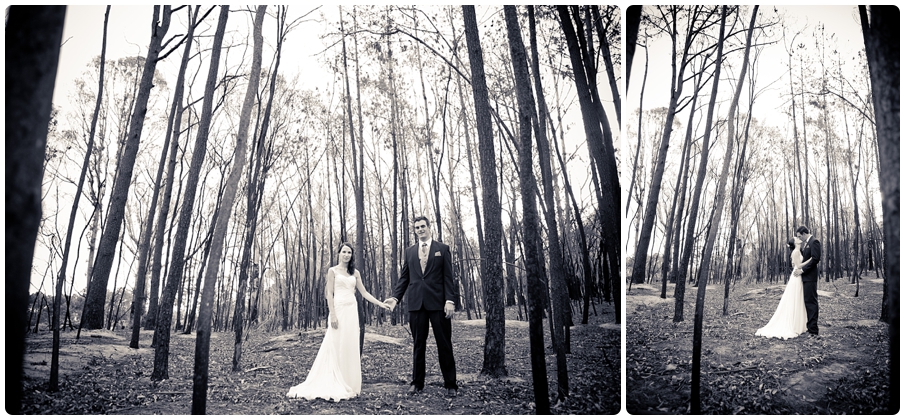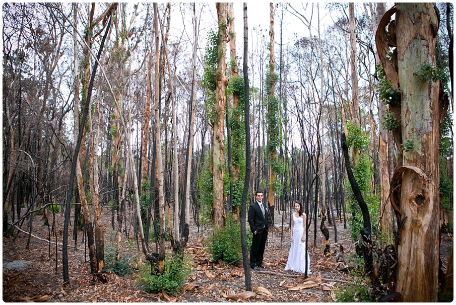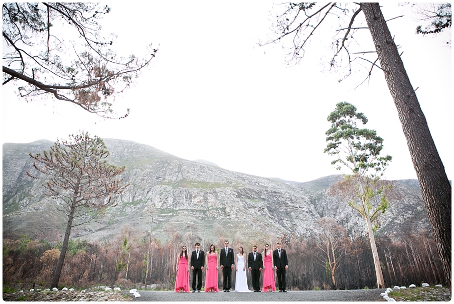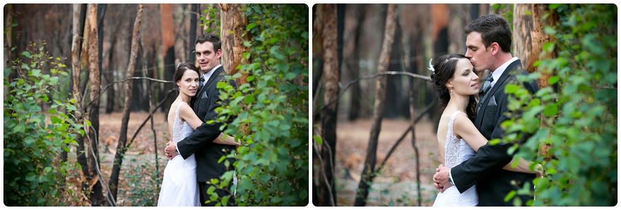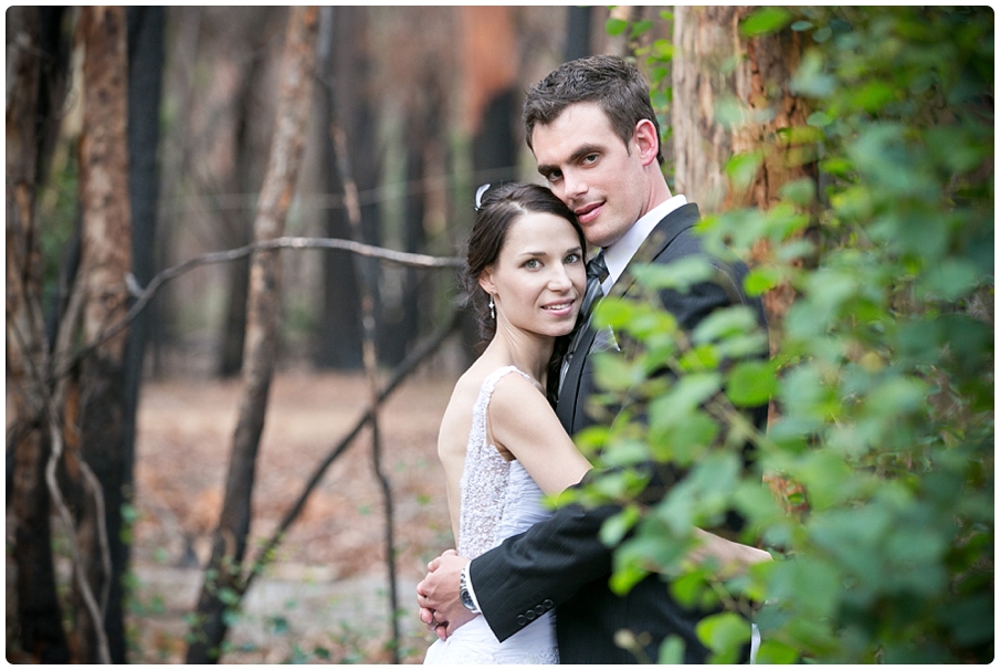 The area between Hermanus and Stanford experienced a huge devastating fire just a few months before the wedding. The couple were concerned that the damage from the fire may effect their wedding plans, this was not the case and instead the burnt forest made a great backdrop for the photos.