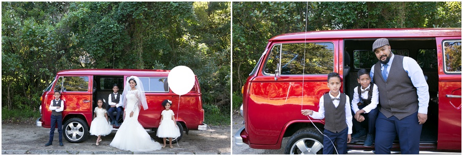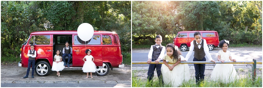 A stunning bride, a dashing groom, a bright red combi and the most adorable bridal party ever, I was in photographers heaven.